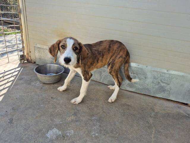 Beschreibung: Mama Divina wurde vor kurzem zusammen mit ihrer Tochter Dakota eingefangen. Vermutlich waren sie von einem Jäger zum Jagdeinsatz geschickt worden, gingen verloren, oder wurden zurückgelassen. Zum Glück konnten sie zusammen gesichert werden. Es ist eine gängige Praxis junge Hunde mit älteren auf die Jagd zu schicken, um zu testen, ob sie ihre Sache gut machen. Die diesjährige Jagdsaison hat begonnen und viele Hunde teilen sich wieder, über die nächsten Monate, das gleiche Schicksal. Der Segugio ist eine ital. Laufhundrasse, ist daher gerne mit seinen Menschen in der Natur unterwegs und bei entsprechender Auslastung im Haus ein sehr angenehmer und ruhiger Mitbewohner. Wenn Sie der ca. 03/2025 geborenen Dakota ein Zuhause geben möchten, gerne bei mir melden. Zur Zeit hat sie 10kg und ist ein fröhliches Hundemädchen.