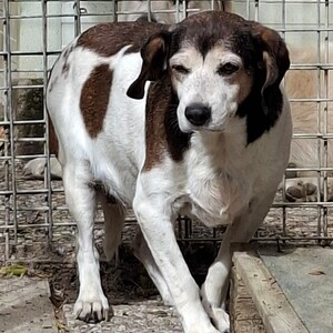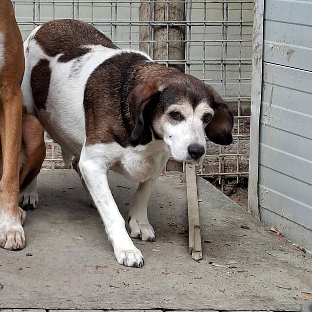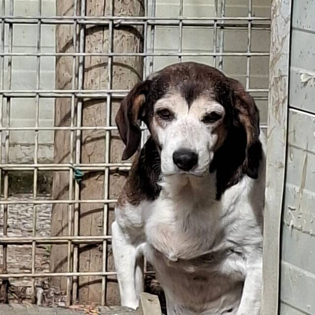 Die Beagle Mix Hündin Bianca kam zusammen mit Divo in die Auffangstation zu Brunella. Auch sie kommt aus Sizilien.