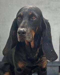 Guten Abend werte Leserschaft, ich bin Professor Dr. Dr. Amicus Canum und ich freue mich, Ihnen von einer kleinen Sensation berichten zu können! So ist es mir tatsächlich gelungen, auf meinen Expeditionen etwas ganz Besonderes zu entdecken. Es handelt sich um die sehr seltene Art der „Tausendsassa“, eine besondere Art von einem Hund, der ein Multitalent ist. Das seltene Exemplar, welches ich gefunden habe, kann ich Ihnen wie folgt beschreiben und an das Herz legen: Es handelt sich um die liebenswerte Hündin Belen, die der besonderen Rasse des Jura Laufhundes angehört. Das Fell von Belen ist kurzhaarig und glänzend schwarz mit lohfarbenen Akzenten an den Beinen und im zarten Gesicht.