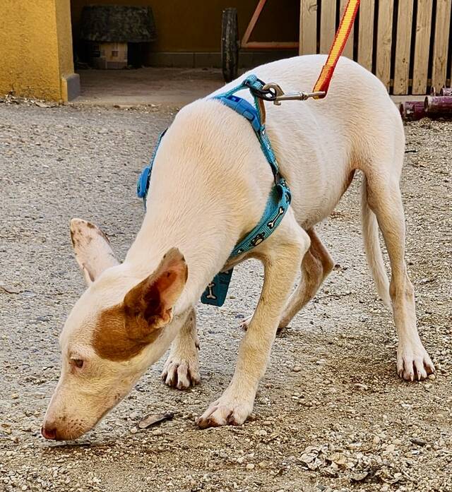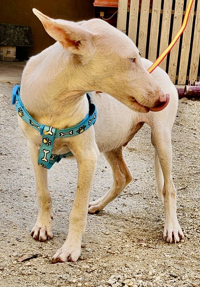 Bombon (4571) Podenco Andaluz - Mix Hündin, geb. am 18.06.2025, hat derzeit eine Schulterhöhe von 35 cm und wiegt aktuell 7 kg.