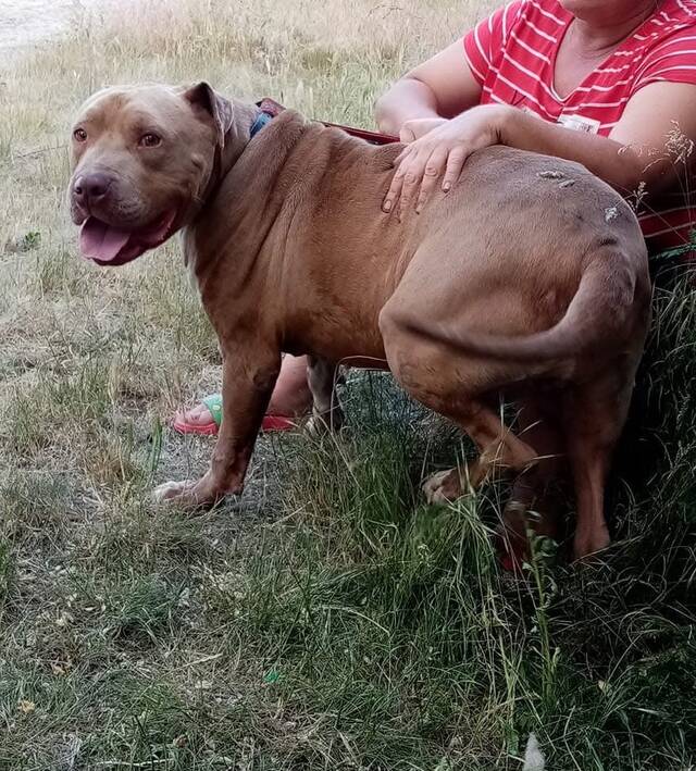 Bruno, American Pitbull-Mix-Junge, geboren am 02.02.2018, hat eine Schulterhöhe von ca. 50 cm und wiegt etwa 23 kg.