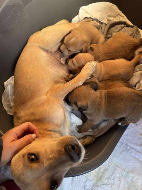 Nicht zu glauben, aber wahr: Die extrem freundliche und menschenbezogene Milla lebte in Rumänien vernachlässigt an der Kette. Natürlich, wie leider immer noch üblich, unkastriert, sodass das Unvermeidliche eintraf: Die kleine Milla wurde von einem der zahlreichen Streuner gedeckt – und schenkte fünf Welpen das Leben. Das gefiel ihrem Besitzer gar nicht und er drohte, Milla und ihre Kinder im Wald auszusetzen … Davon erfuhr dessen Nachbarin und bat eine unserer Tierretterinnen um Hilfe. Obwohl wie immer bis unter die Decke voll mit Notfällen, nahm sie die kleine Familie auf.