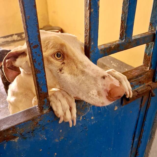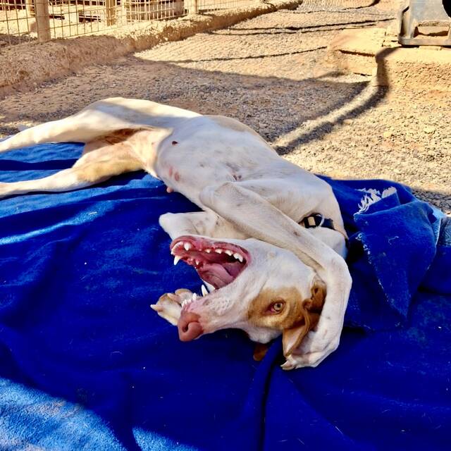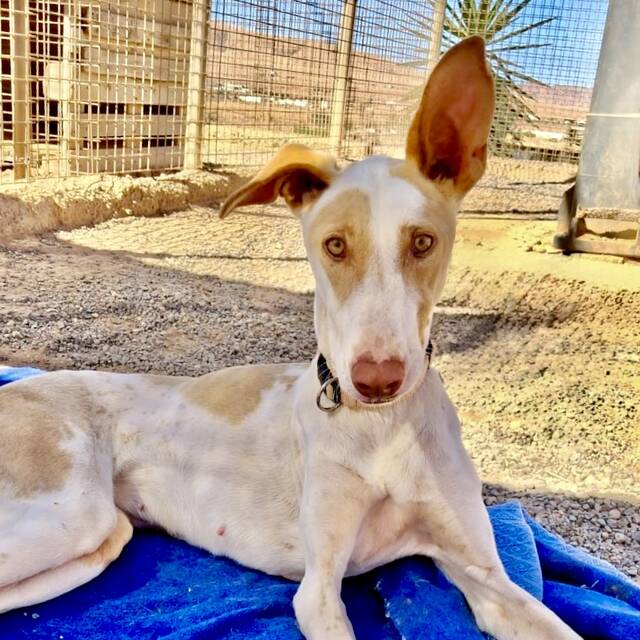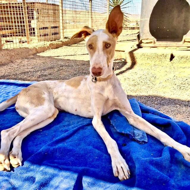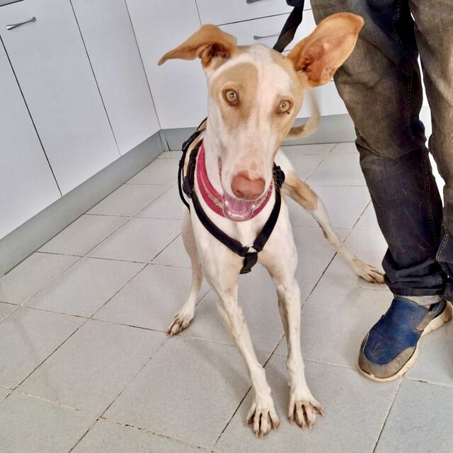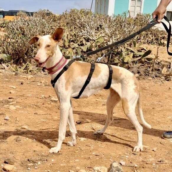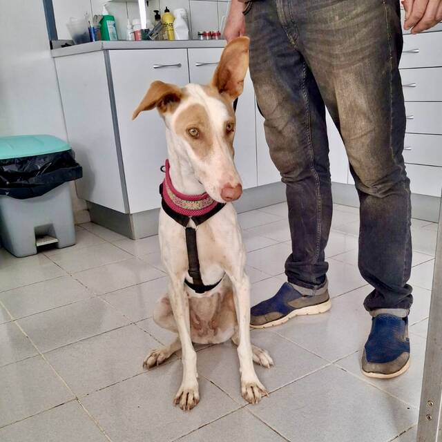 Podenca Mable konnten wir zum großen Glück mit etlichen Bissverletzungen aus der Perrera im Inselsüden übernehmen. Offensichtlich wurde sie von den anderen Hunden im Zwinger einige Male angegriffen, einige ihrer Wunden waren noch sehr frisch.
