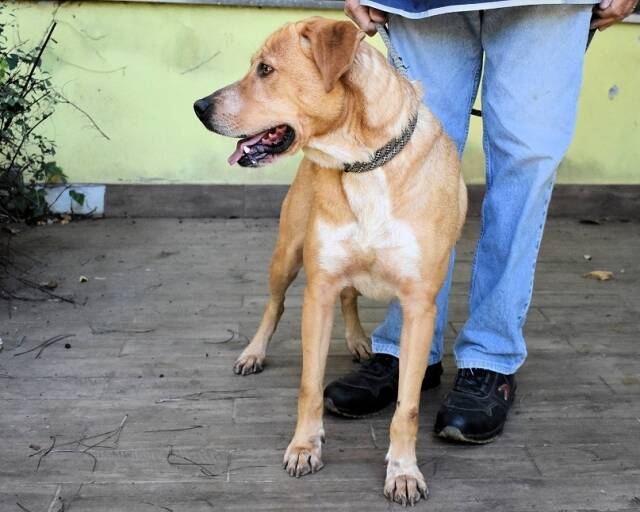 Noland trägt seine Vergangenheit mit sich, ist aber lebendig und vital. Mit rund 62 cm Schulterhöhe und viel Energie ist er kein Hund für Anfänger; er besitzt eine ausgeprägte Persönlichkeit, sucht körperliche Nähe, kann dabei mitunter forsch wirken und sondiert immer wieder seine Grenzen. Bei Begegnungen mit Artgenossen gerät er verständlicherweise rasch in Aufregung. Kurze behutsame Trainingeinheiten unserer Tierschützer zeigten jedoch: Er ist lernfähig und reagiert auf ruhige, konsequente Zuwendung — braucht dafür aber Zeit, Kontinuität und erfahrene Hände von Menschen, die bleiben — auch an Tagen, an denen es schwer ist. Menschen, die führen, ohne zu herrschen; die Ruhe bewahren, wenn es stürmisch wird; die seinem leeren Alltag verlässliche Struktur und eine Geduld schenken, die nicht nachlässt. Hände, die nicht zurückweichen, wenn er hochspringt. Begegnungen, die sicher gestaltet sind, und Arbeit, die klein beginnt und täglich wächst. Dauerhafte Einzelhaft darf für ihn keine Option sein. Noland braucht keinen schnellen Plan, sondern einen Leuchtturm