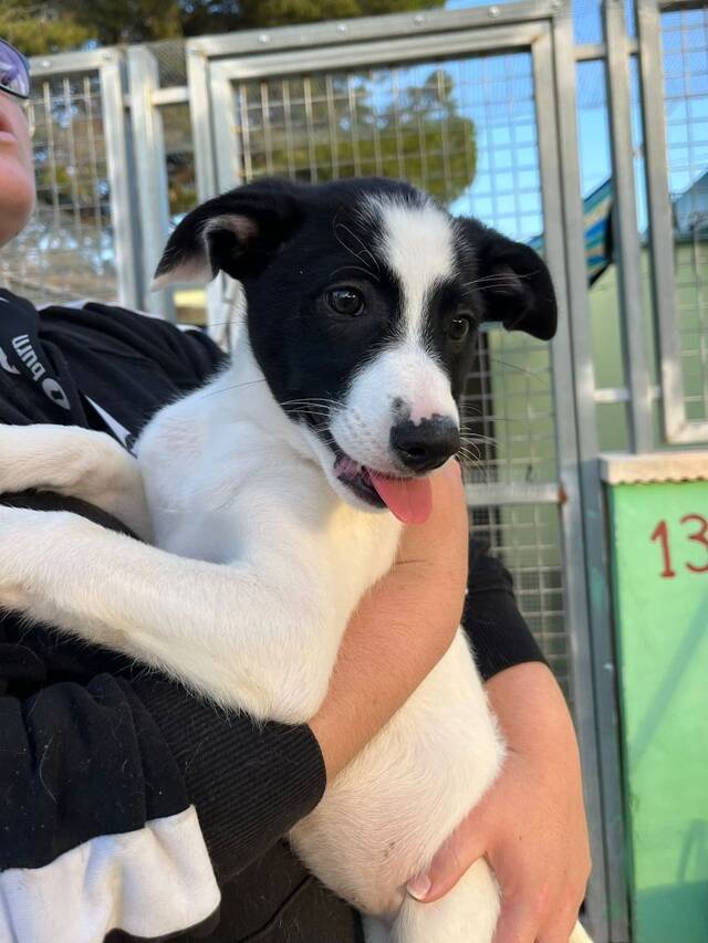 Elena wurde mit ihrer Mutter und ihren 8 Geschwistern in Spanien außerhalb eines Dorfes gefunden. Sie konnten zum Glück alle eingefangen und ins Tierheim gebracht werden, wo sie nun in Sicherheit sind.