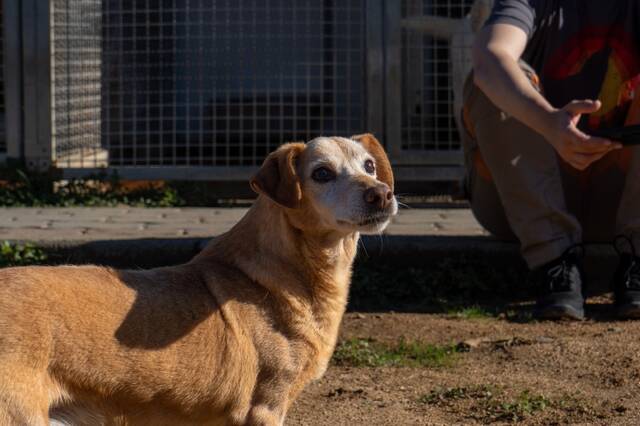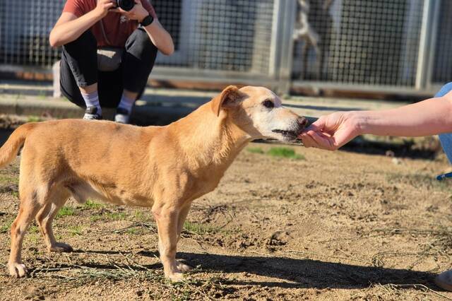 Inzwischen ist Larice eon Opi geworden – ruhiger und offener. Bei unserem Besuch im Oktober 2025 spazierte er entspannt durch den Freilauf und tolerierte unsere Anwesenheit. Als wir ihm Leckerchen anboten, kam er sogar vorsichtig näher und nahm sie behutsam aus der Hand. Berührungen sind ihm noch immer suspekt, und Larice wird ganz sicher – vor allem am Anfang – kein Kuschelhund sein. Doch wer weiß, vielleicht entdeckt er im hohen Alter doch noch, wie angenehm sanfte Streicheleinheiten sein können – besonders wenn sie mit seinen geliebten Leckerchen verbunden sind.