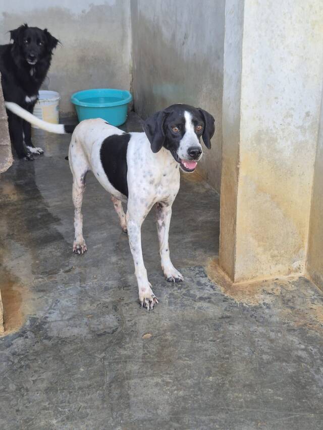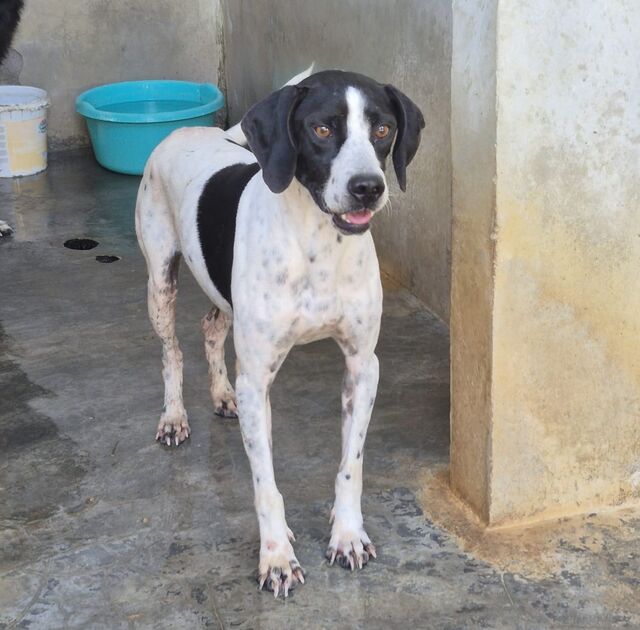 Beschreibung: Gut schaut er aus inzwischen, zumindest äußerlich. Denn Pointermix Osso, ca. 3,5 Jahre alt (Stand 10/2025) kam als Welpe total abgemagert ins Canile. Klapperdürr wurde er natürlich einem Tierarzt vorgestellt, aber die Untersuchungen haben keinen Hinweis auf eine Erkrankung ergeben. Wer weiß wie lange er, auf sich gestellt, unterwegs war, bevor er eingefangen wurde. Mittlerweile hat er sich wieder total erholt und sucht, vor dem nahenden Winter, sehr gerne einen warmen Platz in einer Familie. Osso ist ca. 55 cm hoch und hat ein Gewicht von 22 kg. Ein nettes ländliches Zuhause, bestmöglich mit Garten und Erfüllung seiner Auslastungsbefürfnis wäre unser Wunsch. Gegen eine souveräne Hündin an seiner Seite hätte er sicherlich nichts einzuwenden. Es gehen dieses Jahr noch zwei Transporte nach Sardinien. Vielleicht schaffen wir es ja, das Osso noch dieses Jahr ausreisen kann?!