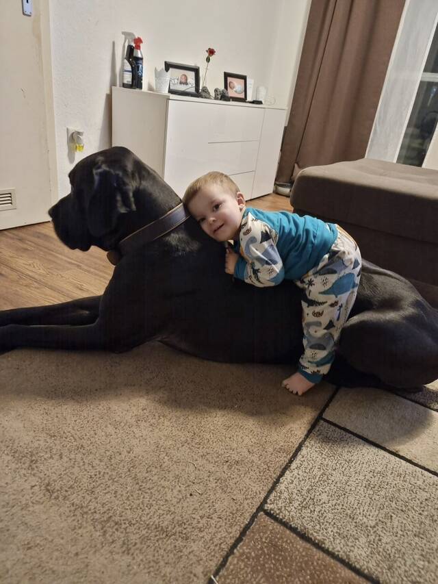 Archie ist 6 Jahre alt und ca. 96 cm groß. Er ist schwarz mit einem weißen Fleck auf der Brust. Archie ist sanft, loyal und verschmust. Sein jetziger Besitzer beschreibt ihn als „Gentlemen auf vier Pfoten“ – ruhig, liebevoll und immer freundlich. Er liebt es, bei seinen Menschen zu sein, genießt Spaziergänge, aber auch gemütliche Stunden auf dem Sofa. Mit Kindern geht er ausgesprochen vorsichtig und liebevoll um. Archie ist kinderfreundlich, verträglich mit andern Hunden und ist sehr menschenbezogen und sozial. Er hat ein großes Herz und eine ruhige, ausgeglichene Art, weshalb er sich wunderbar als Familienhund eignet.