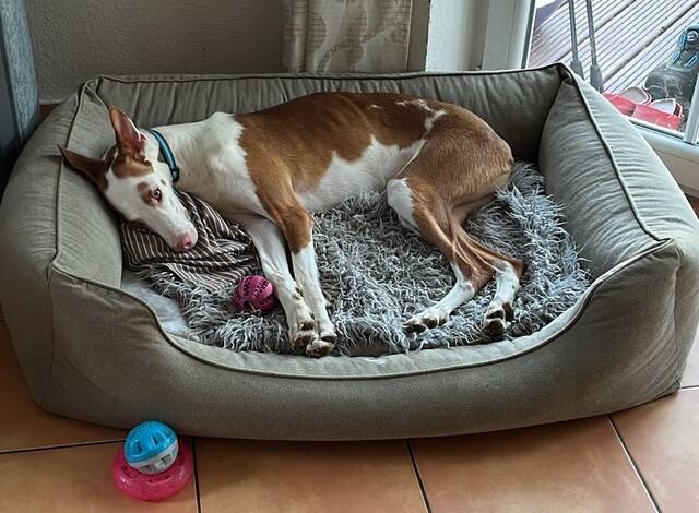 Als Podenco ist Caramelo3 naturgemäß mit reichlich Jagdtrieb ausgestattet. Hier sollte die neue Familie sich darauf einstellen, dass der Rüde wohl eher ein Hund für die Schleppleine werden wird. Auch ein Garten sollte dementsprechend sicher eingezäunt sein. Bei richtiger Auslastung sind sie Zuhause aber meist ruhige, sanfte, sensible und tolle Familienmitglieder. Bitte informieren Sie sich vor einer Bewerbung über die Bedürfnisse eines Podencos.
