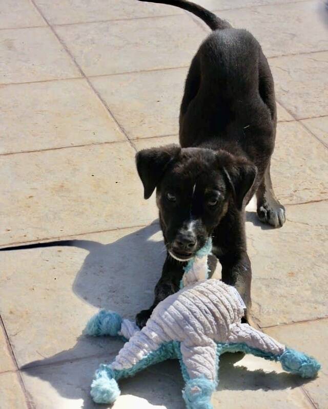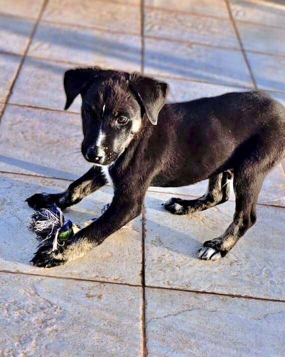 In den letzten Wochen haben die drei ordentlich zugenommen und an Lebensfreude gewonnen. Mit aktuell rund 27 cm Schulterhöhe wird Tuno nicht größer als kniehoch bleiben. Nach seiner Fellzeichnung zu urteilen, ist er ein typischer Bardino-Mischling – klug, lebhaft und voller Energie.