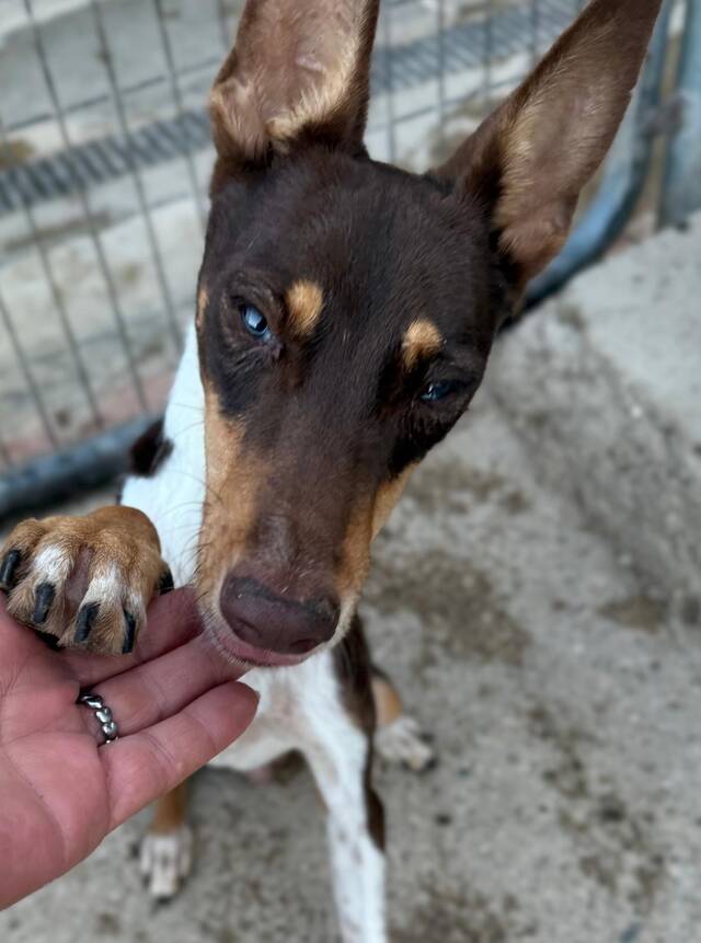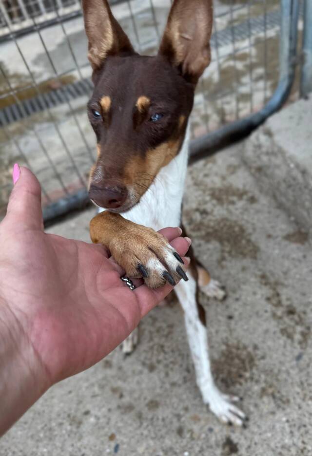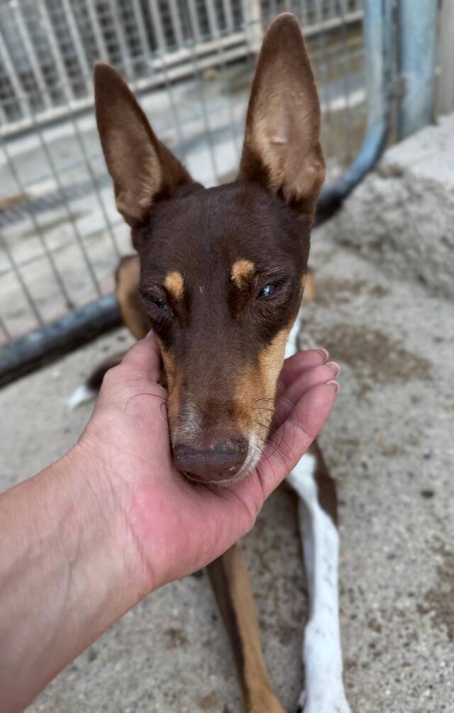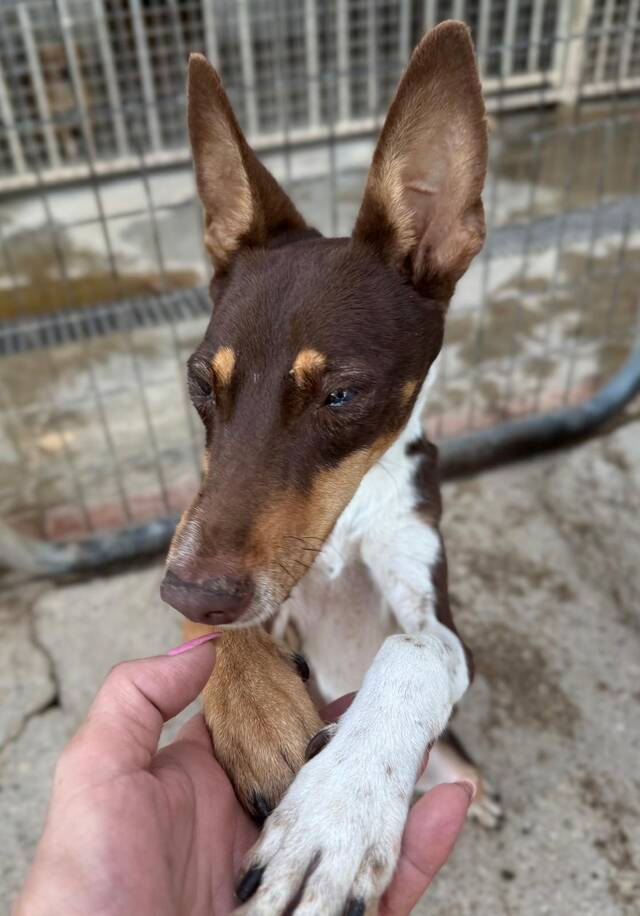 ich bin ein junger Podi-Mix und mein Leben hat mich schon an Orte geführt, die kein Hund je kennenlernen sollte. In der Perrera in Linares saß ich zwischen all den Geräuschen, dem Stress und der Angst – und niemand wollte mich haben, weil ich fast blind bin. Ich wusste nicht, ob ich dort jemals wieder herauskommen würde. Doch dann kam Hilfe: Die Tierärztin María José hat mich gesehen und dank ihr durfte ich ins Refugio ziehen.