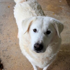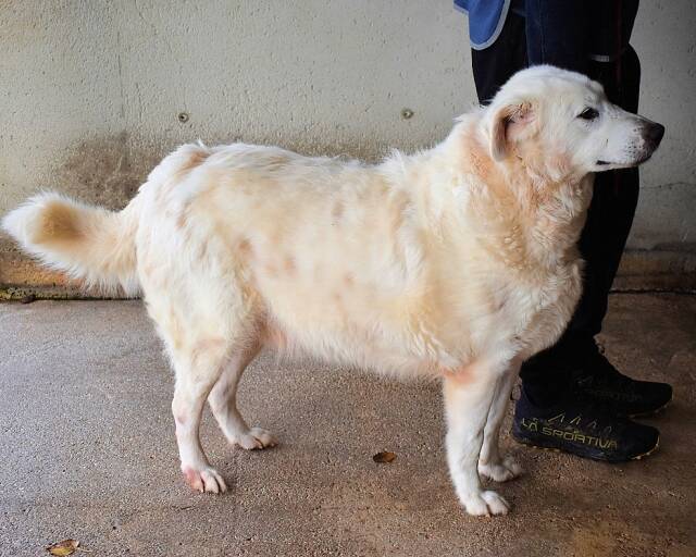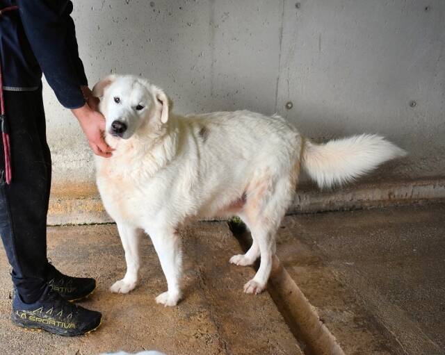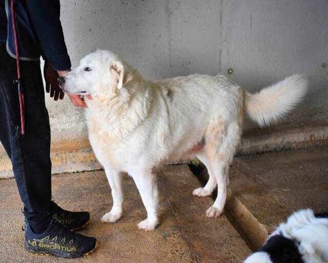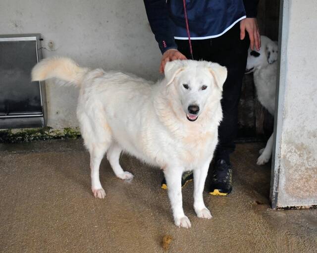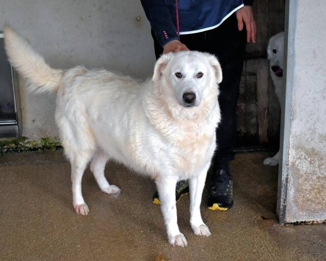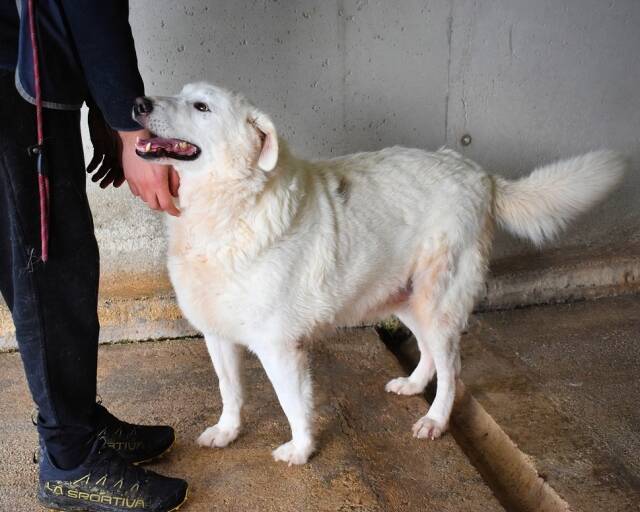 Er ist ein Hund wie ein Traum: bildschön, reinweiß, stattlich groß, mit dem man etwas an der Hand hat. Hauptberuflich Maremmano-Mischling. Deren Vorzüge sind eine robuste Gesundheit bei guter Haltung. Auch fit wie ein Turnschuh und aufmerksam, wenn es um das Wohl der Herde geht, die unter seiner Kontrolle lebt. Die Arbeitslinie dieser Hunde sind selbständige Herdenschutzhunde, die alt werden und keine Züchtungsschäden kennen. In welche Richtung er tendiert, können wir nicht sagen. Aber wir wissen, dass er sehr fein an der Leine geht und mit Menschen gesellig, verträglich und freundlich ist.