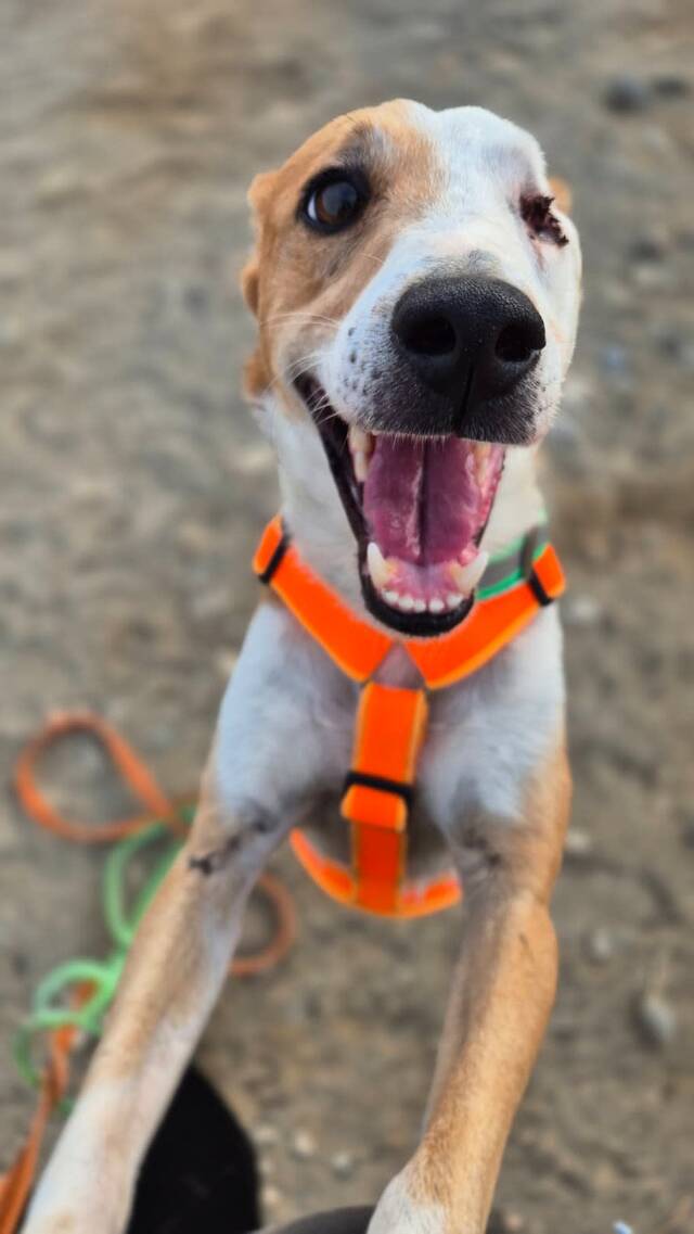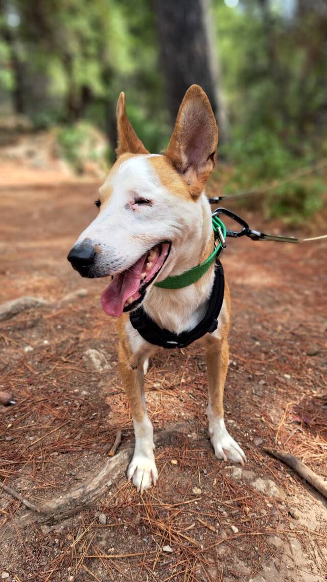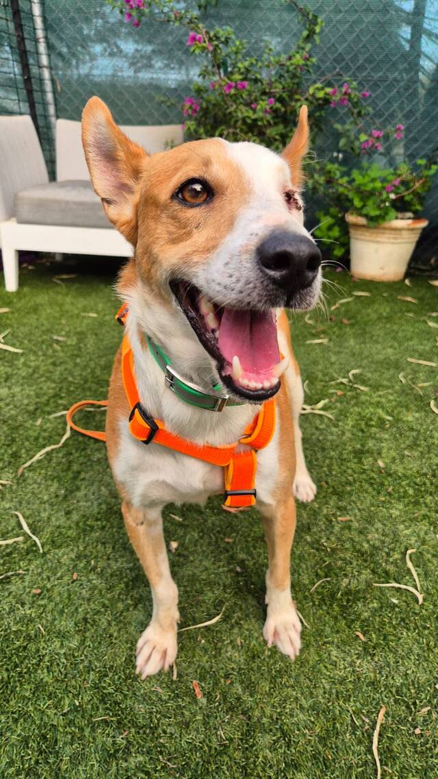 Manchmal braucht es nicht zwei Augen, um die Welt voller Liebe zu sehen – Lopez (*07/2022/ca 50cm) beweist das jeden Tag! Der charmante Rüde tauchte eines Tages durstig und erschöpft im Garten einer Familie auf. Er hatte nur ein Auge, aber das scheint ihn kein bisschen zu stören. Da die Finder ihn nicht behalten konnten, kam Lopez zu uns ins Tierheim TripleA Marbella – und er hat sich sofort in die Herzen aller Freiwilligen geschlichen.
