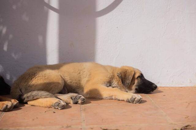 Beschreibung: Trebol (*ca. 07/2025) ist der sanfte Riese aus seinem Wurf Deutscher Schäferhund/Mastin-Mischlinge. Schon als Welpe hat er gezeigt, dass er ein ruhiger, gelassener und sehr selbstbewusster Hund ist. Er liebt die Nähe zu seinen Menschen, fordert aber nicht ständig Aufmerksamkeit ein. Trebol ist ein kluger, sozialer Hund, der sich gut mit anderen Hunden versteht und seinen Alltag ruhig angeht.