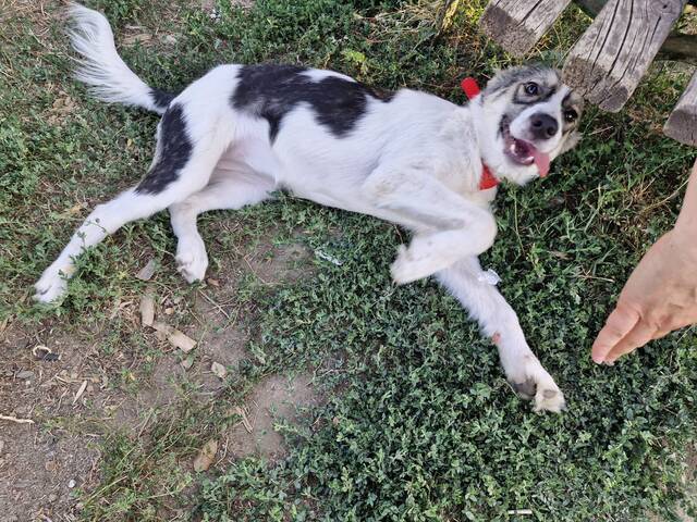 Malina ist eine wunderschöne, liebe und aktive junge Hündin. Der Tierarzt hat als Geburtsdatum den 01.04.2025 geschätzt. Sie ist ca. 46 cm groß und wiegt ca. 13 kg.