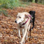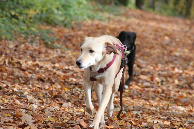 Spaziergänge genießt sie sehr. Sie liebt es, in der Natur unterwegs zu sein und läuft mittlerweile fröhlich Touren von bis zu zwei Stunden. An der Leine bzw. am Geschirr geht sie sehr schön, begegnet anderen Hunden freundlich und neugierig und bleibt bei Spaziergängern, Joggern oder Radfahrern ganz entspannt.