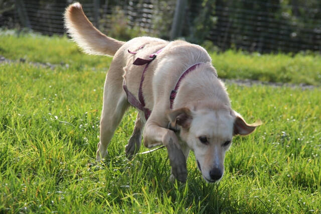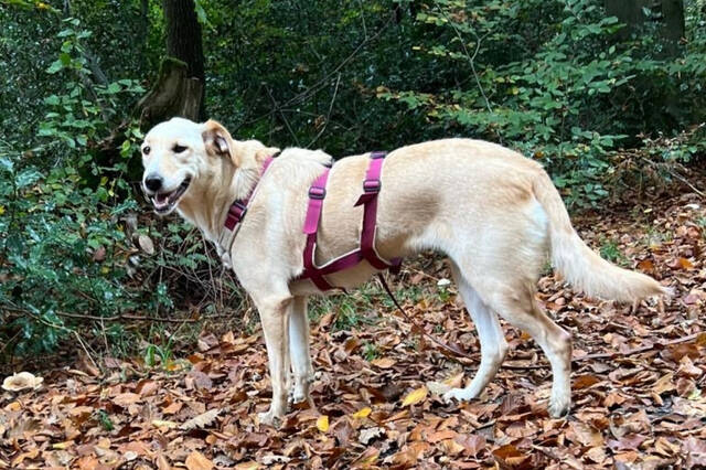 Etwas unsicher ist sie noch, wenn fremde Menschen ins Haus kommen – dann meldet sie sich kurz durch Bellen. Auch das Anlegen des Geschirrs und Berührungen an den Pfoten oder von oben, etwa beim Abtrocknen, sind für sie momentan noch ungewohnt. Mit Geduld und positiver Bestärkung wird sie aber sicher schnell weiter Vertrauen fassen.