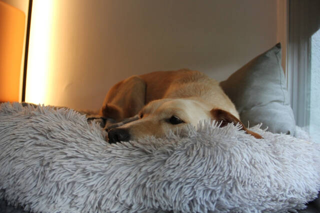 Sie liebt gemütliche, weiche Körbchen, kuschelt sich gerne zu den anderen Hunden und hat das Büro als ihren ganz persönlichen Lieblingsplatz entdeckt – dort liegt sie zufrieden und beobachtet das Geschehen. Allein war Olivia bislang noch nicht, doch gemeinsam mit ihrem Hunderudel kann sie problemlos für eine Weile allein bleiben.