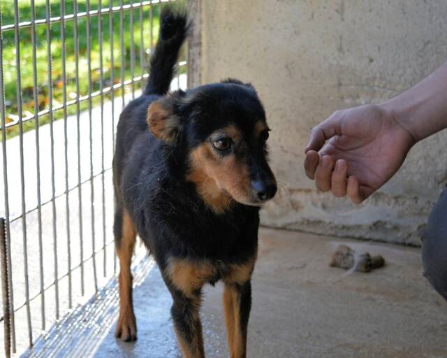 Grigor ist ein kleiner Rüde mit einer Schulterhöhe von etwa 42 cm, geboren am 1. Dezember 2021. Seit dem 1. September 2023 lebt er in einem italienischen Hundelager. Dort teilt er sich aktuell den Zwinger mit Teagan, einem freundlichen Rüden, mit dem er gut klarkommt.
