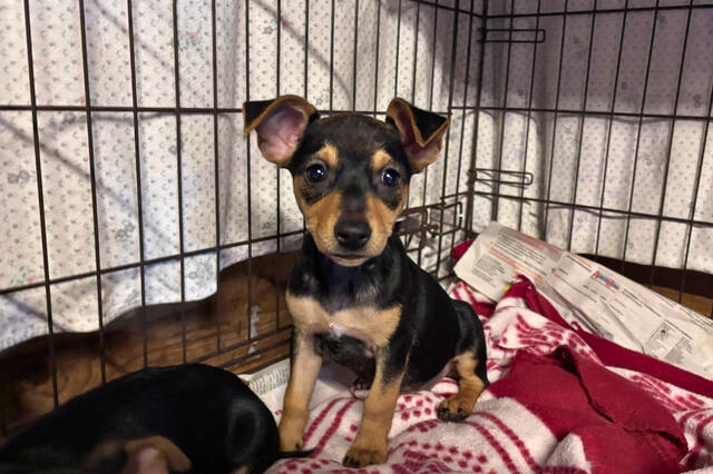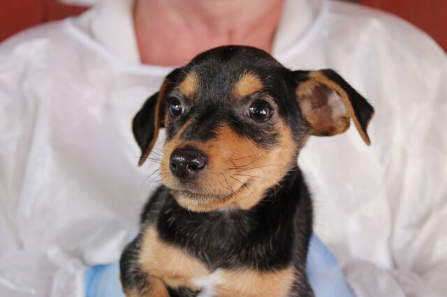 Wie bin ich? Felipe ist ein kleiner Sonnenschein auf vier Pfoten – neugierig, lebhaft und voller Lebensfreude. Er ist der agilste seiner Geschwister und immer als Erster zur Stelle, wenn es etwas zu entdecken gibt. Dabei ist er der rundlichste und größte der drei Welpen – ein kräftiger kleiner Junge mit einer ganz klaren Pinscher-Maske in klassischem Black and Tan. Auf seiner Brust trägt er einen winzigen weißen Fleck, der ihn unverwechselbar macht. Seine niedlichen Knickohren geben ihm einen besonders charmanten, fast verschmitzten Ausdruck. Typisch Pinscher-Mix zeigt Felipe sich aufmerksam und lernfreudig, dabei aber auch anhänglich und verschmust, sobald er Vertrauen gefasst hat.
