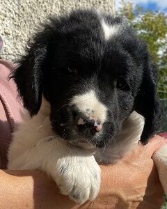 Hier für meinen Bruder, den Ian. Er ist fast überall weiß, nur sein Kopf hat schwarzes Fell mit einem weißen Herzchen ganz oben und noch ein bisschen Weiß um die Nase. Und wenn er der kleine Hund ist, mit dem ihr so etwa die nächsten 12-15 Jahre euer Leben teilen wollt, dann ruft doch mal seine Vermittlerin an. Wenn ihr schnell seid, dann könnte er schon ganz bald kommen. Nämlich so, dass er noch 9+1 Mal wach wird, wenn ihr ihn abgeholt habt…und schon ist Weihnachten.