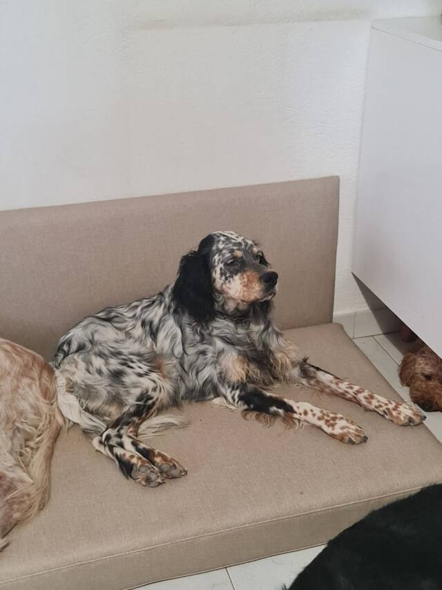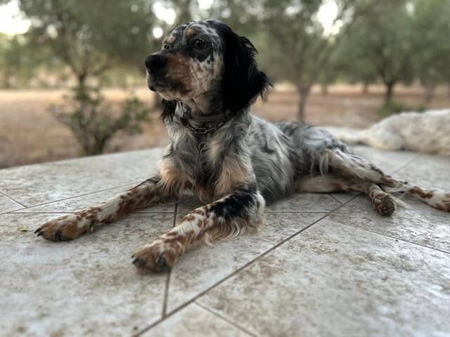 Astrids Haarkleid ist voller orangener und schwarzer Tupfen mit der schönen Bezeichnung tricolor, also dreifarbig. Mit großen schwarzen Augen schaut Astrid voller Vertrauen in die Kamera. Wie kann es sein, dass eine Hündin wie Astrid kein Zuhause hat? Astrid teilt das Schicksal vieler Jagdhunde in Italien. Sie wurde von einem Jäger für die Jagd angeschafft und wurde dann wegen der schlechten Gesundheit des Jägers zusammen mit ihrem bezaubernden Sohn Sirio auf einem Stück Land irgendwo im Nirgendwo gehalten. Dort hat eine freundliche Tierschützerin die beiden entdeckt und zum Glück zu sich geholt.