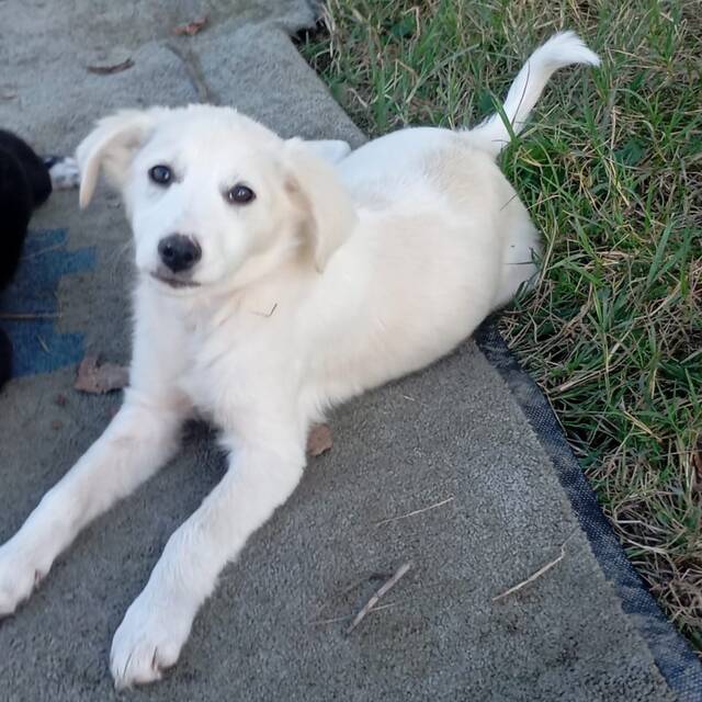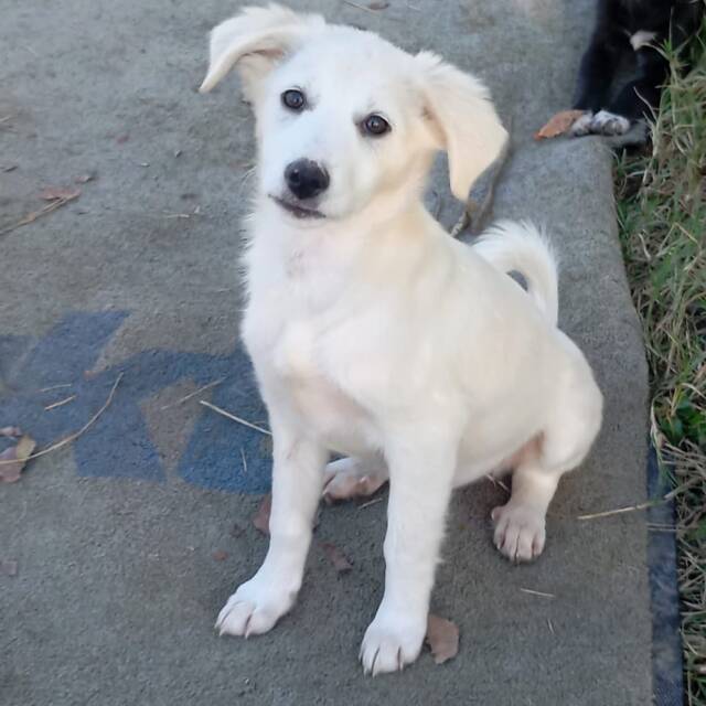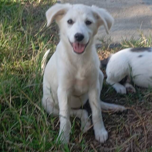 Erina wurde zusammen mit ihren Geschwistern in der Nähe unseres Shelters bei einer Müllstelle gefunden. Thanasis fand sie dort und nahm sie mit in sein kleines Shelter.