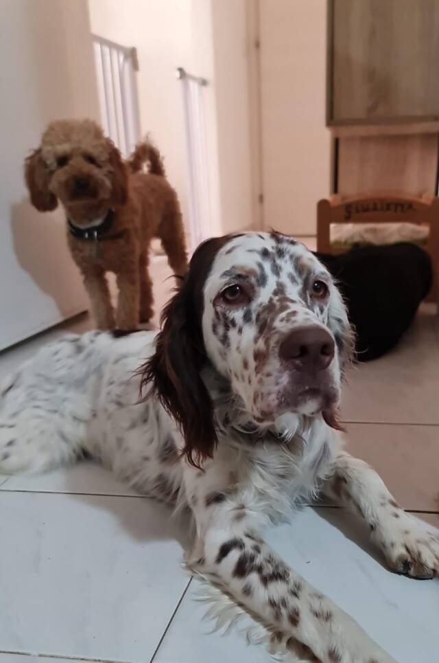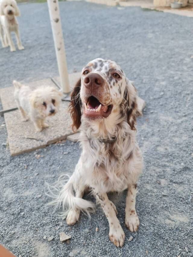 Sirio ist ein fröhlicher junger Setter, der gemeinsam mit seiner Mama von einem Jäger auf einem Stück Land im Nirgendwo gehalten wurde, weil dieser aufgrund gesundheitlicher Probleme nicht auf Jagd gehen und den jungen Hund dafür ausbilden konnte. Ein Stück Land im Nirgendwo ist natürlich auch nicht der richtige Ort für einen jungen Hund, ebenso wenig für seine Mama. Das Glück hat die beiden entdeckt und eine mit uns befreundete Tierschützerin auf sie aufmerksam gemacht. Sie hat beide zu sich und ihrer Familie geholt.