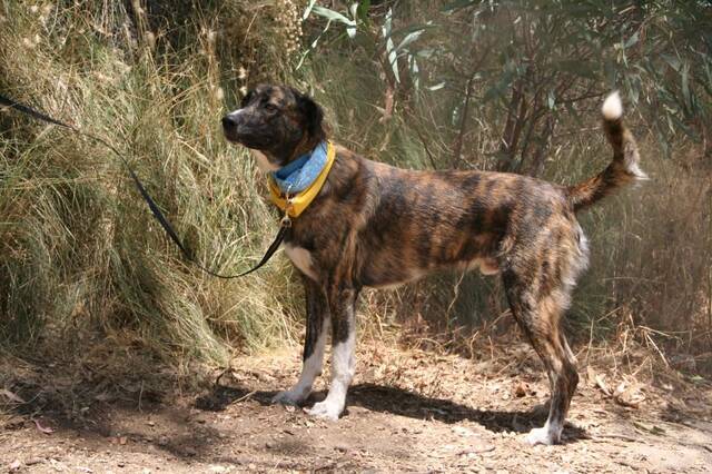 Charakter: Loki (* ca. 12/2019, ca. 75 cm) ist ein großer und starker Hund – sowohl in körperlicher Hinsicht als auch vom Charakter her. Mit den meisten anderen Rüden verträgt er sich nicht gut, aber mit Hündinnen kommt er gut klar. Als Mastín Español-Mischling zeigt er Herdenschutzhund-typische Eigenschaften wie Territorialität und Schutzverhalten.