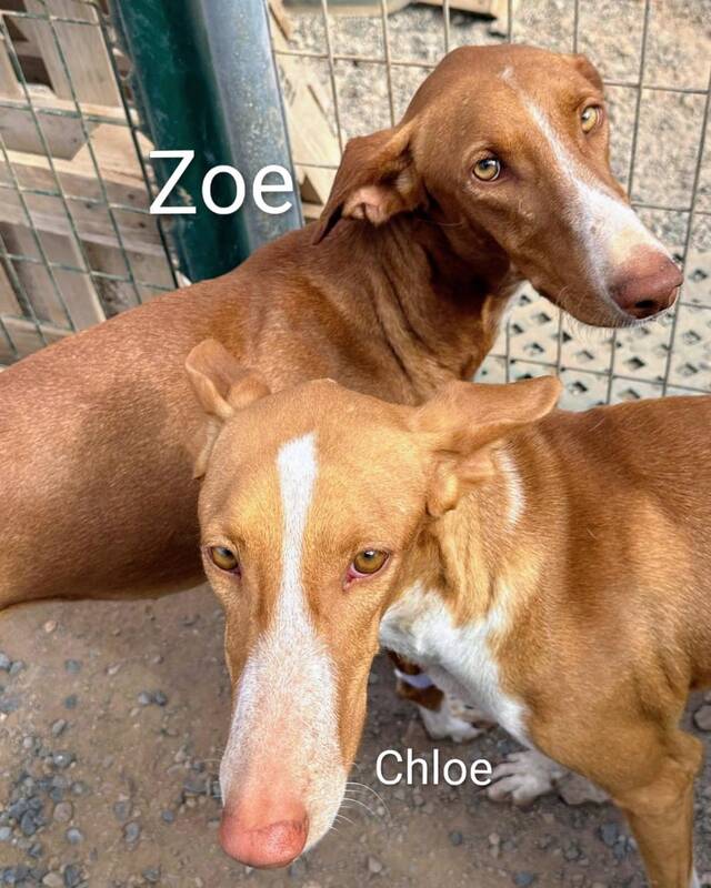 Zoe, ein liebevolles Podenco-Mädchen, verbrachten lange Zeit gemeinsam mit ihrer Freundin Chloe in der Perrera von La Pared. Schon beim ersten Anblick war klar: Diese beiden armen Seelen müssen dort raus – ihr sanftes, ausgeglichenes Wesen hat sofort alle Herzen erobert.