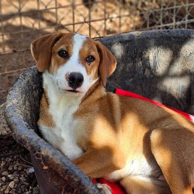 Ginny ist ein typisches Hundekind. Sie ist fröhlich, freundlich und verspielt. Anfangs ist sie etwas unterwürfig, aber sie genießt die menschliche Nähe und liebt Kuscheleinheiten. Mit ihren Hundefreunden versteht sie sich sehr gut.
