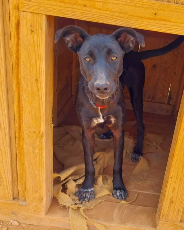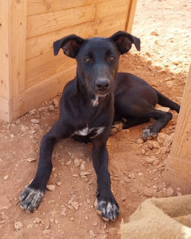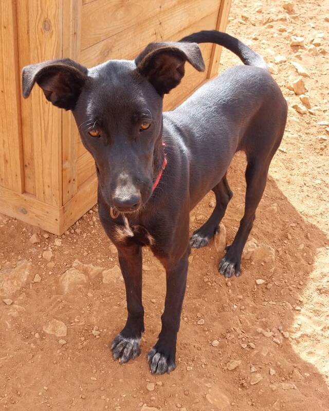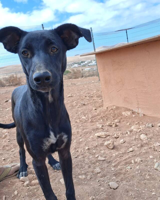 Vor einigen Wochen entdeckten Sarah und Sven zufällig 4 verwilderte und extrem scheue Junghunde in einem Barranco in der Nähe ihrer Finca. Die kleinen wohnten anscheinend in Höhlen unter einem großen Steinhaufen. Dort errichten die Beiden dann schnellstens Wasser- und Futterplätze und fuhren fortan jeden Tag zweimal dorthin, um diese zu befüllen, aber auch um möglichst viel Zeit dort zu verbringen. Die Hundekinder sollten sich an sie gewöhnen und Vertrauen gewinnen. Die kleinste, bereits sehr abgemarterte Miyu wurde sogar sehr schnell zutraulich und konnte als erstes in Sicherheit auf die Finca gebracht werden.