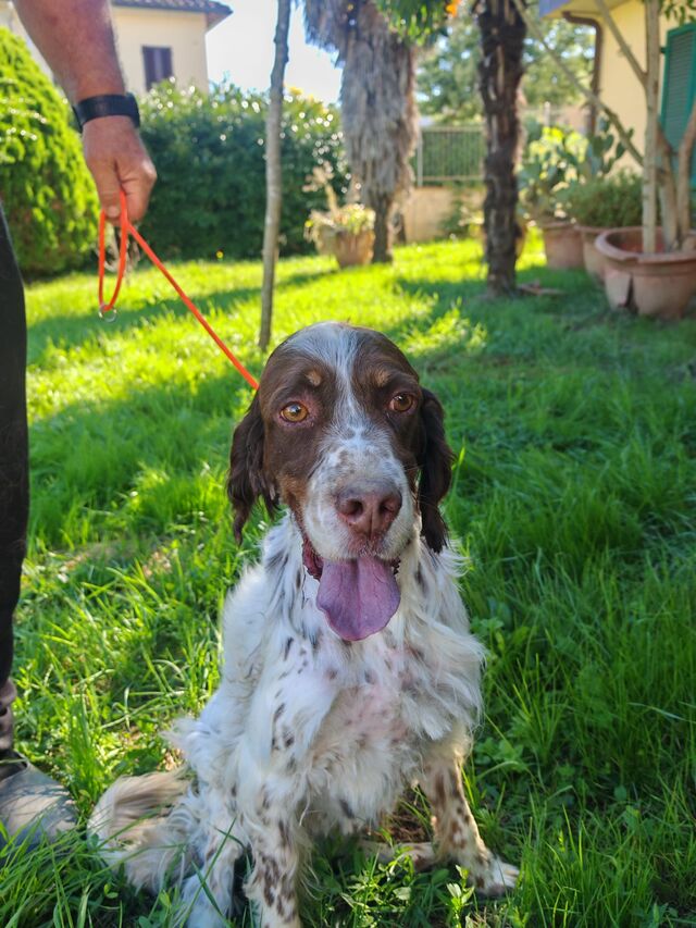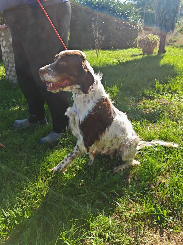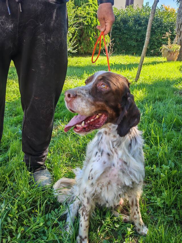 Zet ist mit seinen 9 Jahren ein Senior. Er ist menschenbezogen, freundlich und verträglich mit seinen Artgenossen. Mit der Farbe Liver Belton ist Zet ein echter Hingucker.