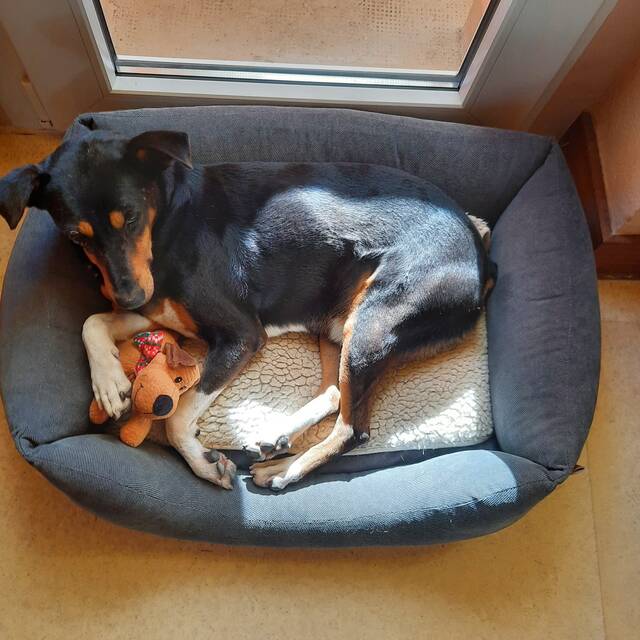 Er ist offen gegenüber neuen Menschen und wir könnten uns vorstellen, dass er auch mit Kindern, die wissen, dass man einen Hund nicht bedrängt, zusammenleben könnte.