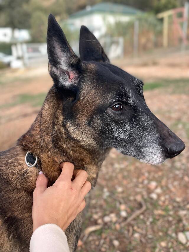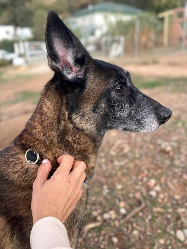 Beschreibung: India (*ca. 03/2020, ca. 61 cm) ist eine Hündin, deren Vergangenheit sich deutlich in ihrem Gesicht widerspiegelt. Ihre früh ergraute Schnute lässt sie älter wirken, als sie laut ihren Unterlagen tatsächlich ist. India befindet sich aktuell in unserem Partnertierheim Triple A Marbella (Spanien) – und genau dort zeigt sich auch, wie sehr sie unter der lauten, hektischen Umgebung leidet.