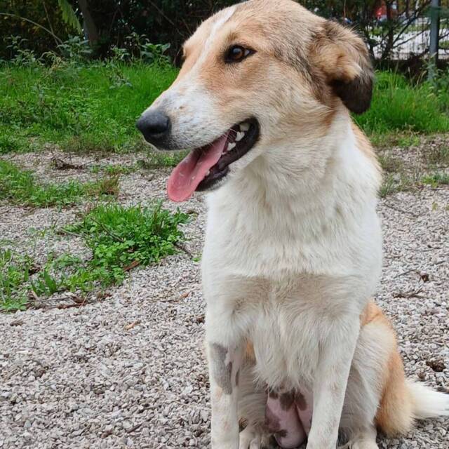 Beschreibung: Chrisa und Christina fanden Sofia hochtragend auf der Straße und nahmen sie sofort in Sicherheit. Nachdem sie ihre Welpen zur Welt gebracht und liebevoll aufgezogen hatte, wurde sie kastriert und durfte im Shelter erst einmal zur Ruhe kommen.