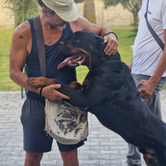 Charakter: Prachtvoller Rottweilerrüde, menschen- und menschenkinderlieb, artgenossen- und katzenverträglich, gesellig, freundlich und kooperativ, auf der Suche nach familiärer Wertschätzung und Geborgenheit.