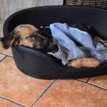 Sie versteht sich großartig mit den Hunden der Pflegestelle – so gut, dass man sie regelmäßig zu dritt im allerkleinstenKörbchen findet. Nähe, Wärme und Zusammensein? Für Leonilde das Größte. Auch den Kater findet sie klasse und akzeptiert ihn völlig selbstverständlich als Teil ihres kleinen Alltags.