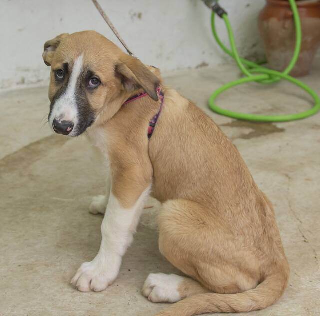 Beschreibung: Ist das nicht ein hübsches Hundekind? Haku heißt dieses Herzchen und ist einer von 3 Welpen, die in einem Müllcontainer nahe Ubeda/Andalusien gefunden wurden. Die Kleinen waren etwa zwei Wochen alt und wurden auf eine Pflegestelle gebracht, wo sie liebevoll von der Pflegemama mit der Flasche großgezogen wurden. Nun sind die drei Zwerge gesund, gut herangewachsen und bereit, ein neues Zuhause zu finden.
