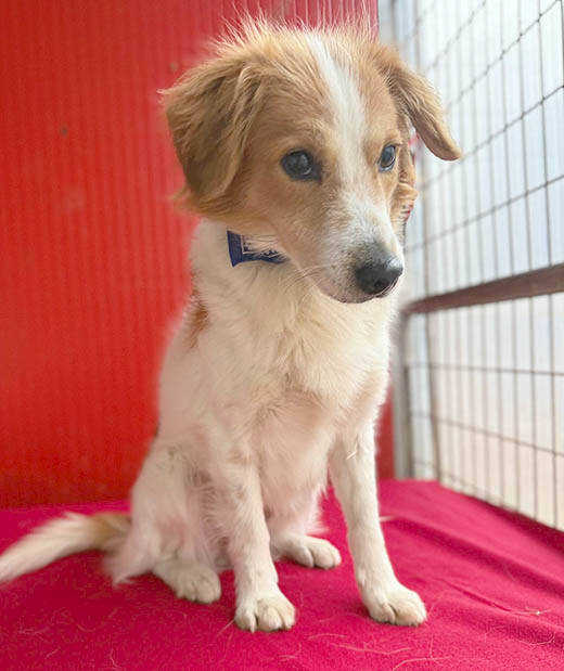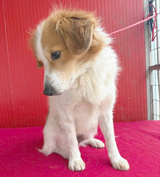 Das Tierheim muß ihm wie das Paradies vorkommen. Endlich ein sauberes und trockenes Körbchen, ein voller Futternapf, streichelnde Hände und nette Spielkameraden. Mit den anderen Hunden versteht er sich sehr gut - mit Katzen können wir ihn vor Ort leider nicht testen.