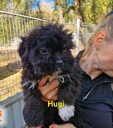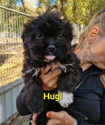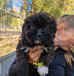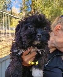 Die kleine Hugi lebte zusammen mit ihrer Mama Hedi und ihren Geschwistern Herceg, Hanga und Hepy auf einem verlassenen Bauernhof. Eines Tages machte der Besitzer des Hofes die Entdeckung und fand die kleine Familie. Da das nicht das war, was er wollte, gab er die Rasselbande zusammen mit Mama Hedi im Tierheim ab.