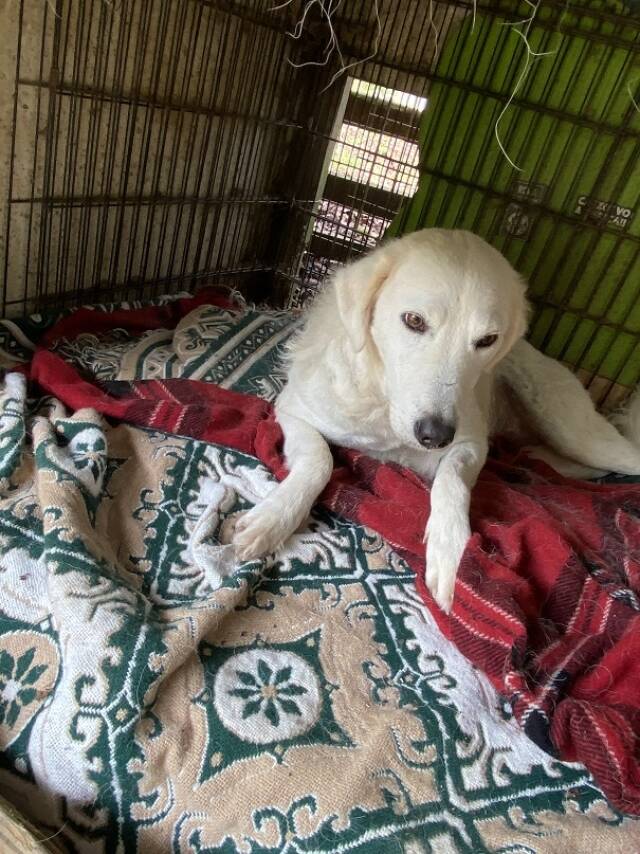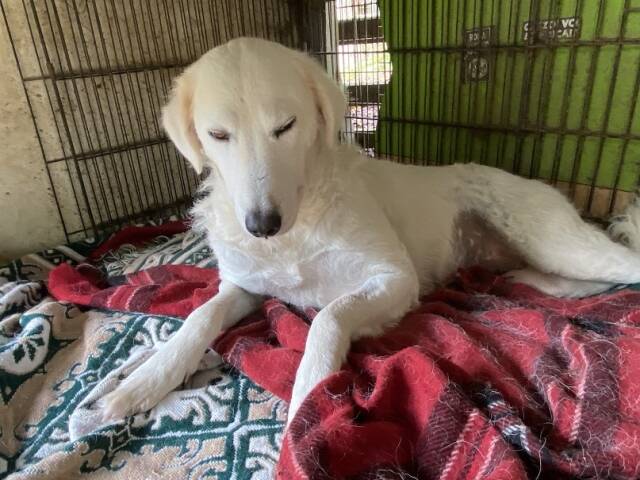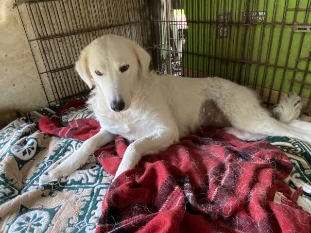 Für einmal wissen wir in etwa, wie das Leben der bildhübschen, schneeweißen Hündin Numa bis vor kurzem ausgesehen hat. Sie gehörte ursprünglich einem Schäfer, der gemerkt hat, dass Numa fürs Schafe hüten nicht taugt. Statt für die Hündin einen anderen Platz zu suchen, hat er sie einfach vor die Türe gesetzt und somit ihren Tod billigend in Kauf genommen. Denn Numa hatte nicht nur 10 Welpen (zehn!), um die sie sich kümmern musste, sondern bewegte sich auf der Suche nach etwas Essbarem immer weiter weg von den Feldern Richtung stark befahrene Hauptstraße.