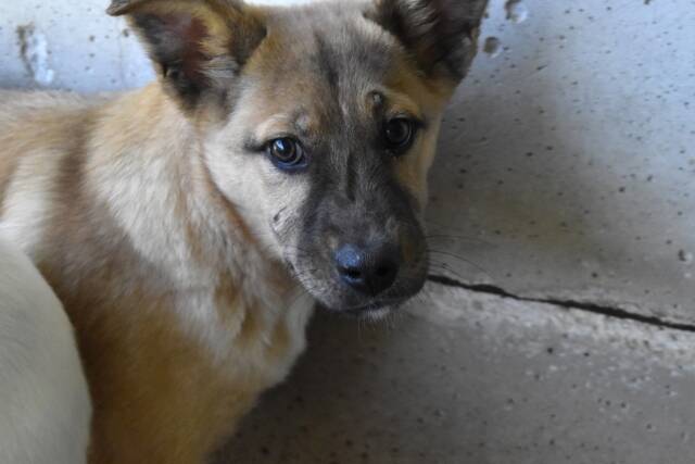 Unsere zwei Hundekinder scheinen bislang noch nicht sehr viele Begegnungen mit freundlichen Zweibeinern gehabt zu haben. Beim Besuch der mit uns befreundeten Tierschützer Anfang November 2025 zeigten sich beide schüchtern, vielleicht sogar ein wenig ängstlich. Es sind keine Angsthunde, aber sie kennen Berührungen, die Leine oder einfach nur die Gegenwart von Menschen, die es gut mit ihnen meinen, nicht. Doch weder Quarven noch Quorivah haben Aggressivität gezeigt, weder der eine noch die andere hat zum Beispiel bei Berührung zu schnappen versucht, wie das einige Hunde aus Angst oder Unsicherheit tun. Nein, Quarven und seine Schwester haben Fluchtwege gesucht, sind unter den Trinkeimer gekrochen oder haben sich hinter einem ihrer Zellengenossen versteckt.