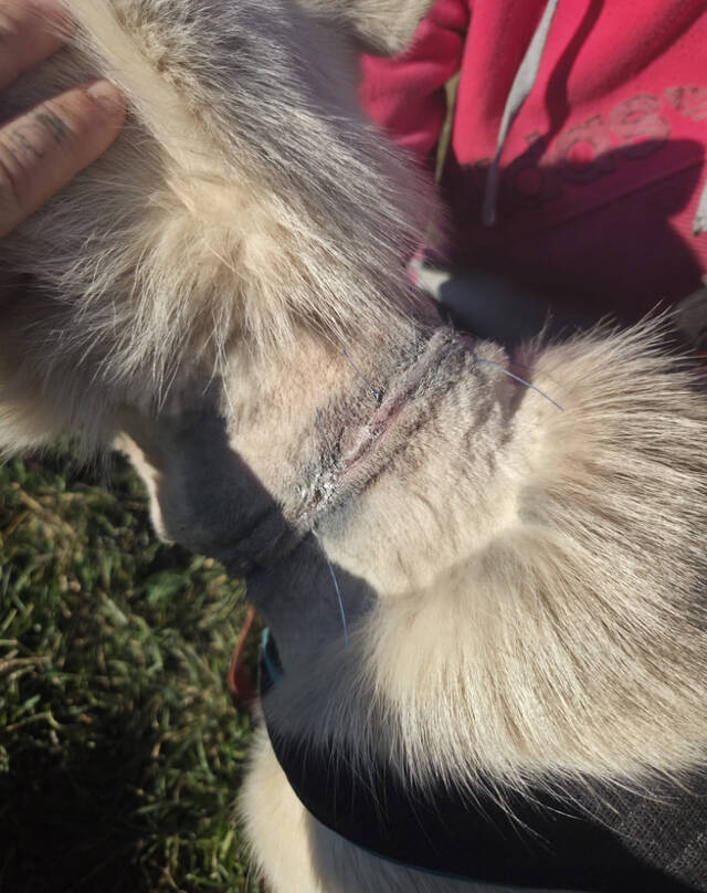 Ein eingewachsenes Halsband wurde ihr nach der Rettung sofort entfernt, denn es war infiziert und damit sehr schmerzhaft. Glücklicherweise verheilt die Wunde gut und schon bald wird Fell darüber gewachsen sein.