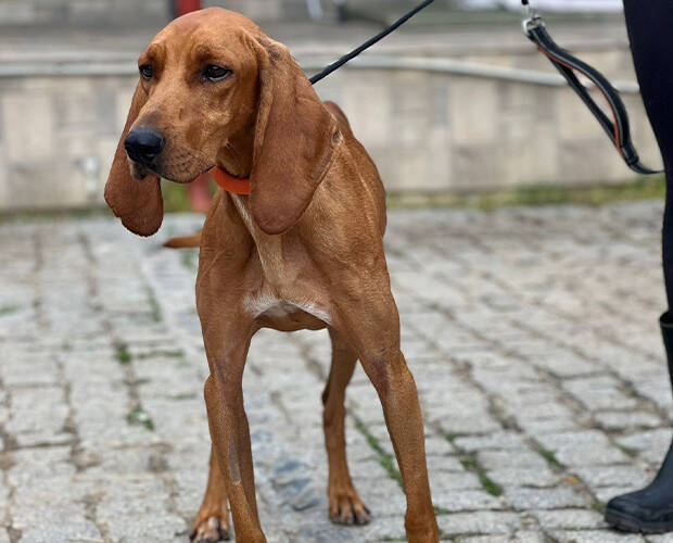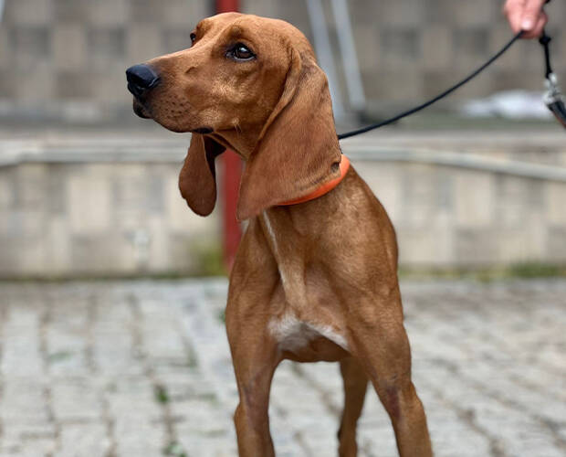 Er ist ein sehr charmanter Junghund, der unbedingt einige Kilos zunehmen muss. Zurzeit bekommt er immer einen Pulli oder Hundemantel an, den er wirklich brav umlässt. Es sind die anderen Hunde, die hin und wieder etwas daran rumzuppeln.