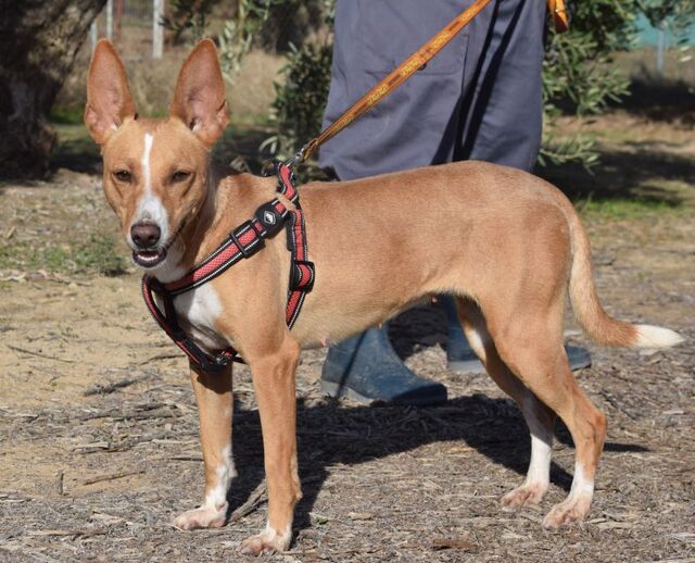 Beschreibung: Guten Tag ich bin die Tana (geb. 24.9.2024) und ich bin ein wunderschönes junges Podenco-Mädchen. Ich war so froh, als ich meinen Zwinger verlassen durfte und es raus auf die Wiese ging, aber das war auch ganz schnell wieder vorbei - nur ein paar Fotos und ein kurzes Video, dann war es aus mit der Freiheit und es ging zurück in den Zwinger. Nun warte ich also auf eine neue Familie, denn am liebsten bin ich in der Nähe von meinen Menschen.