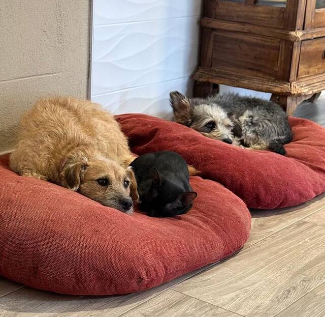 Wir sind zwei junge Mischlingshündinnen (Bimba ist 3 Jahre und Lola 1 ½ Jahre alt), die zusammen am Bahnhof ausgesetzt wurden. Ganz allein und verängstigt wurden wir gefunden, obwohl wir beide sehr liebevoll, anhänglich und freundlich sind. Zum Glück hat man uns ins Refugio gebracht, wo wir Sicherheit und Fürsorge bekommen haben, und schon bald durften wir zu einer lieben Pflegefamilie ziehen.