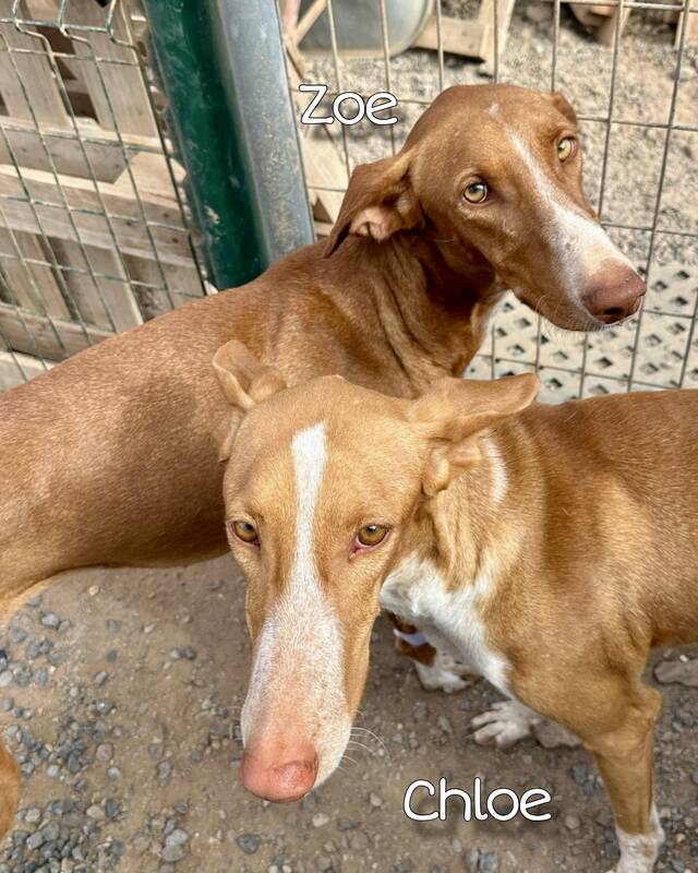 Chloe, ein liebevolles Podenco-Mädchen, verbrachten lange Zeit gemeinsam mit ihrer Freundin Zoe in der Perrera von La Pared. Schon beim ersten Anblick war klar: Diese beiden armen Seelen müssen dort raus – ihr sanftes, ausgeglichenes Wesen hat sofort alle Herzen erobert.