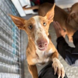 Beschreibung: Paris kam im November 2025 mit etwa fünf Jahren ins Tierheim. Sie ist eine Podenco-Hündin, die auf der Straße gefunden und ins Tierheim gebracht wurde. Paris ist ca. 35 cm groß, bei etwa 10 kg. Blutuntersuchungen und Kastration stehen noch aus, können zeitnah vor Vermittlung durchgeführt werden.