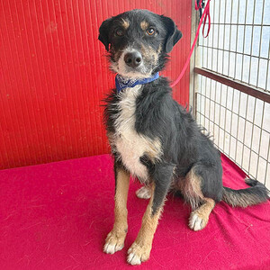 Das Tierheim muß ihm wie das Paradies vorkommen. Endlich ein sauberes und trockenes Körbchen, ein voller Futternapf, streichelnde Hände und nette Spielkameraden. Mit den anderen Hunden versteht er sich sehr gut - mit Katzen können wir ihn vor Ort leider nicht testen.